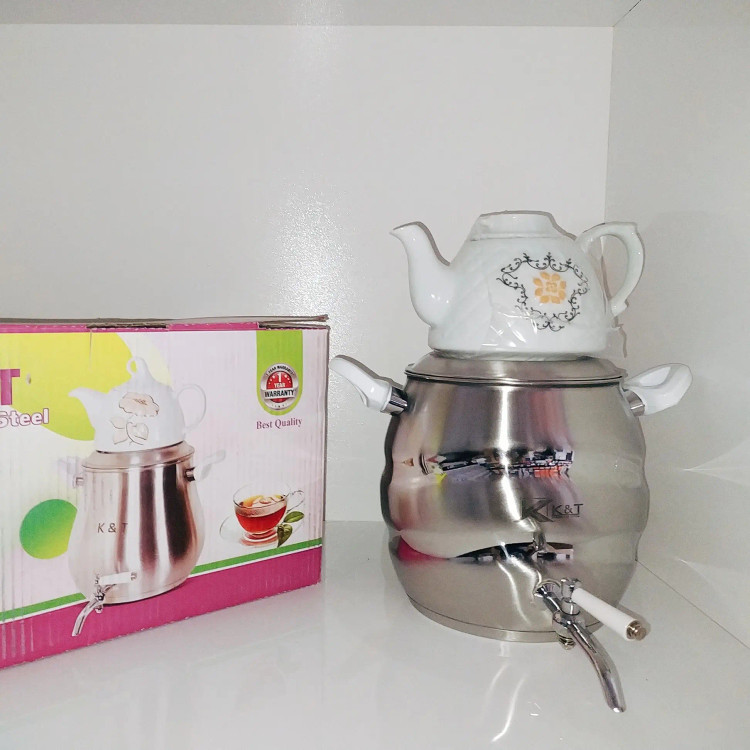 کتری قوری شیر دار. برند کیتی کف چدن ظرفیت ۵لیتر قوری چینی کیفیت خوب