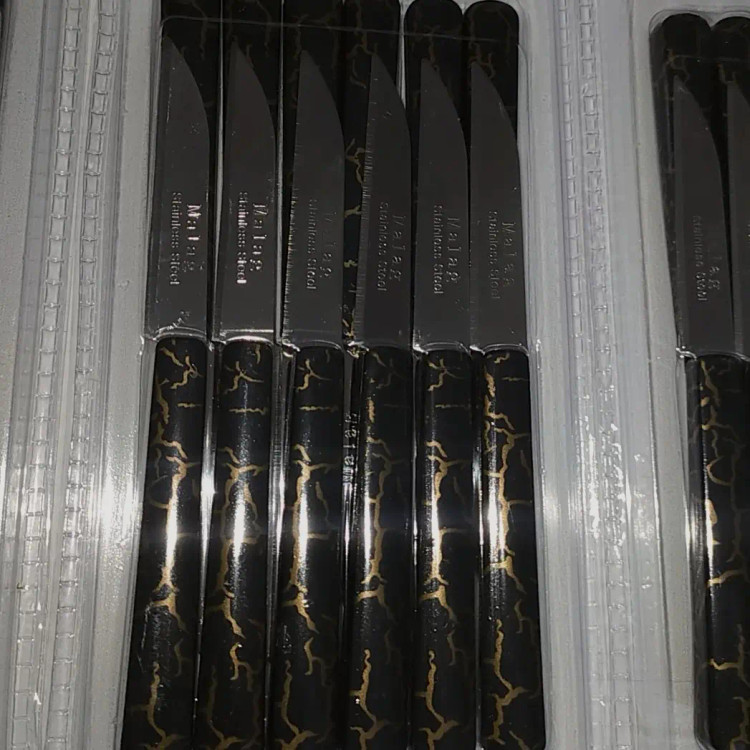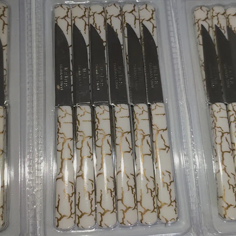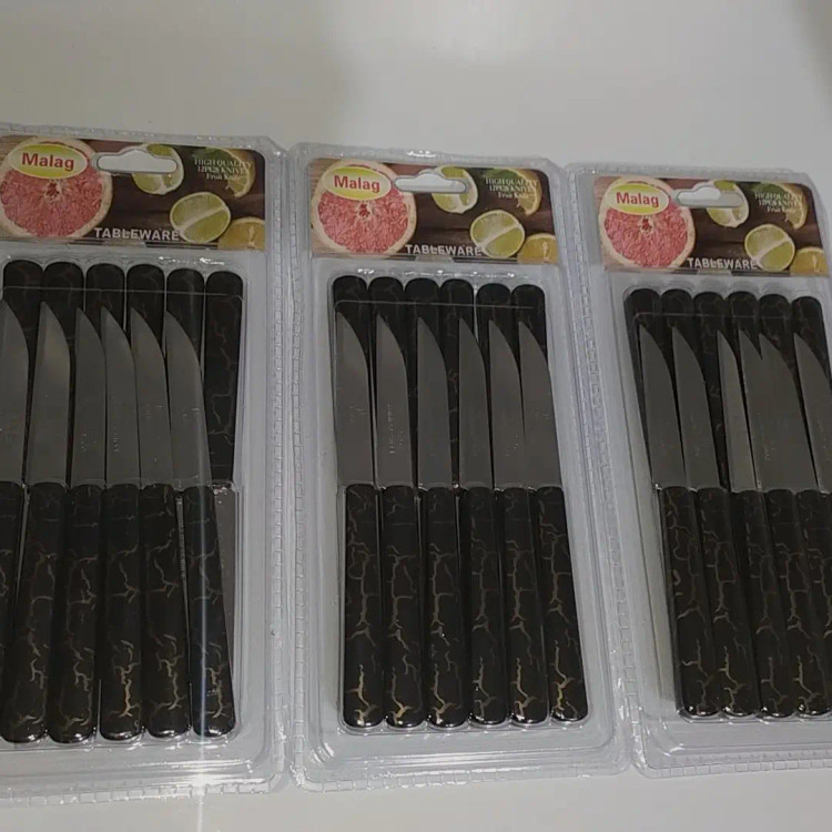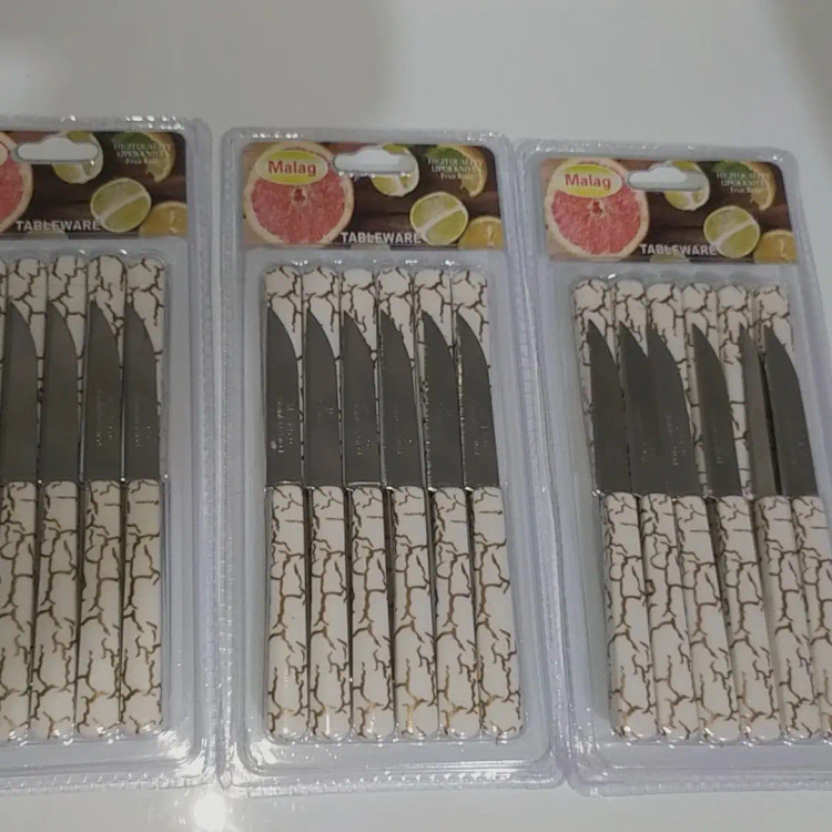 چاقومیوه خوری طرح ستم در دو رنگ تیره و سفید. کیفیت خوب قیت مناسب هر بسته شامل ۱۲,عدد میباشد