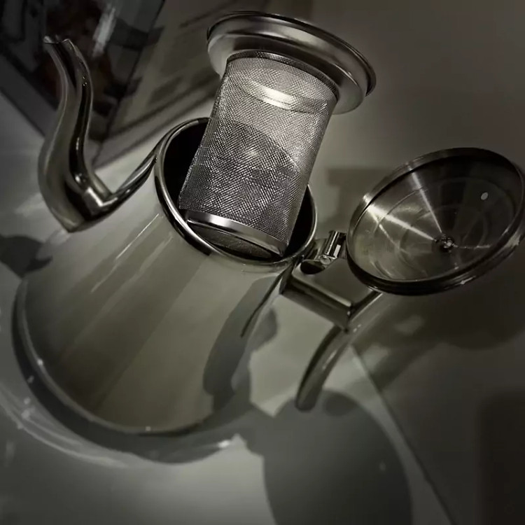 قوری استیل دسته بغل طرح. عربی سایز. 2لیتر کیفیت خیلی عالی. برند. یونیک klz صافی دار