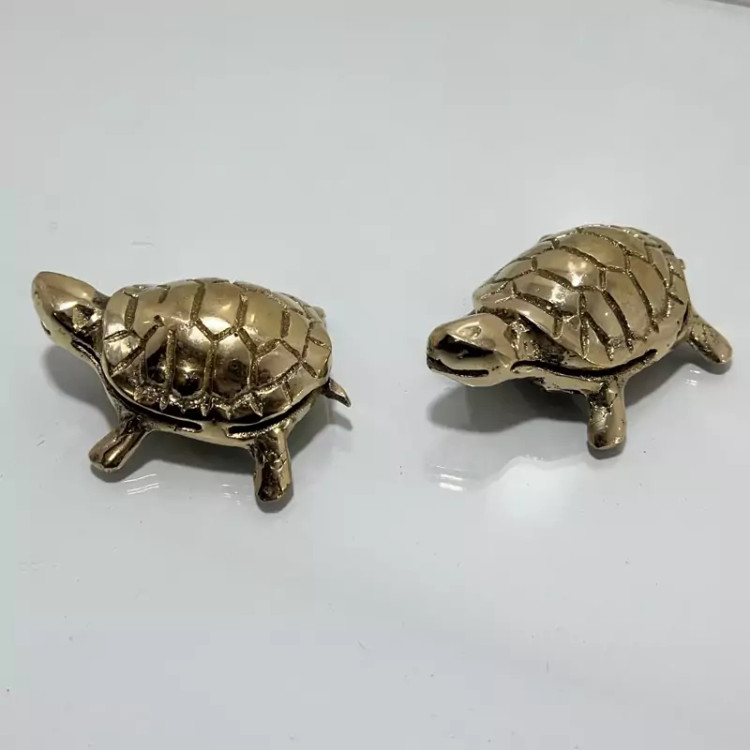 مجسمه برنجی لاکپشت. کوچک. جفتی برنج خالص بدون تغییر رنگ